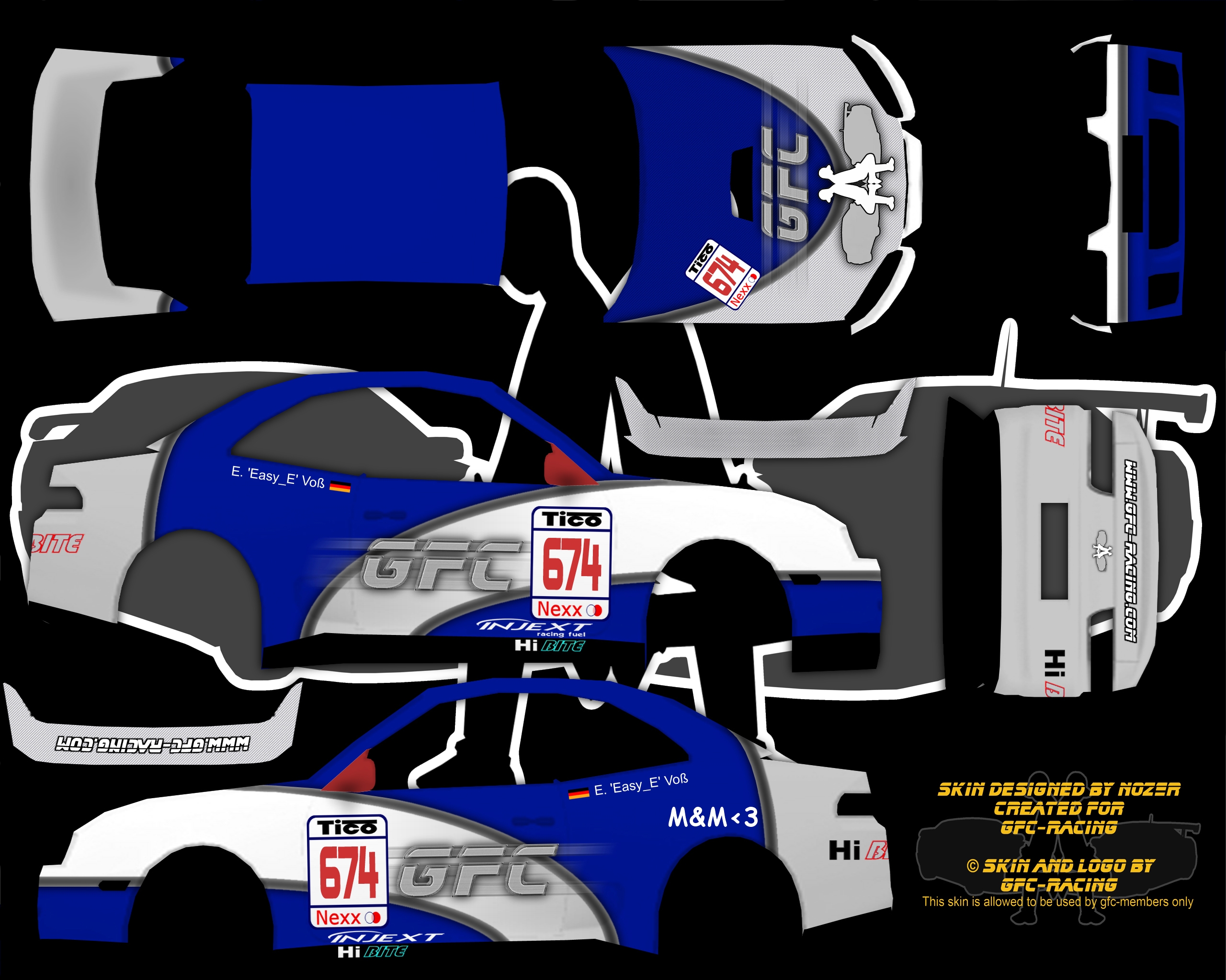 Quote from VTiRoj :Matching avatars yay! Could someone render these skins for me please? Could both cars be on the same pic like this as well? http://img266.imageshack.us/img266/7663/xrtzh0.th.jpg Sorry to pester, but can anyone do this please?