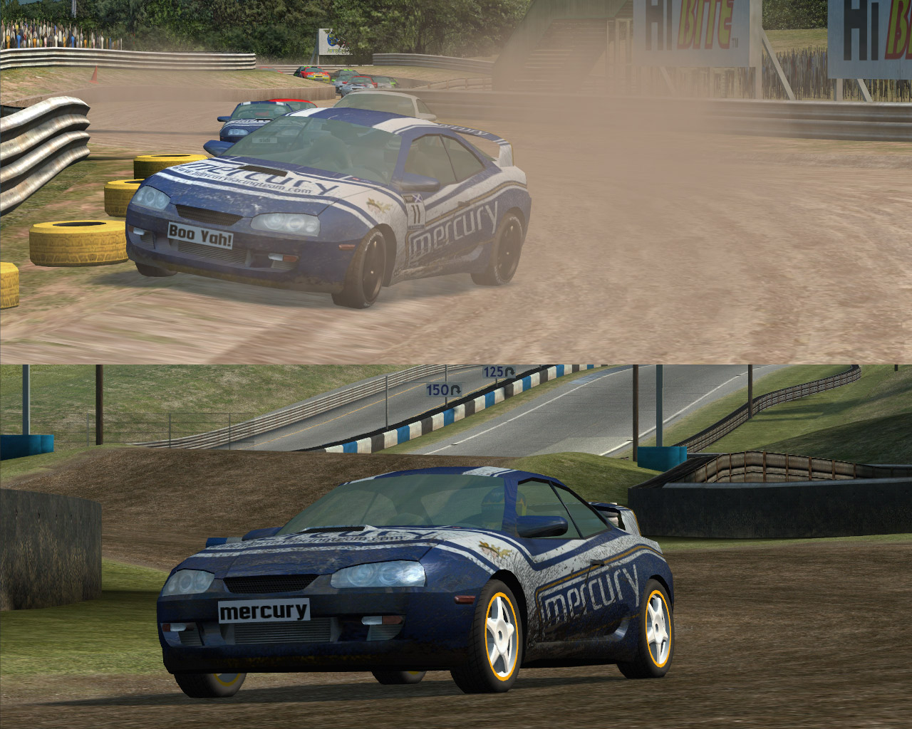 I did a 50 lap race the other day and really wish we would have dirt, brake dust etc on the cars, so i spent a couple of hours and i came out with these 2.
