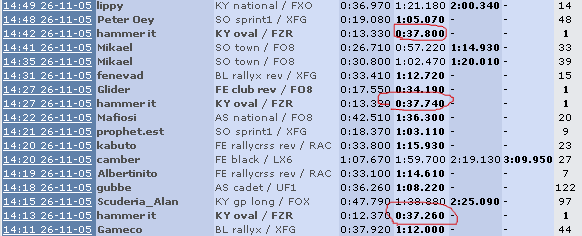 We're looking at oval hotlap beating the WR by 0,5 sec. Lap is promptly deleted by the user and replaced by another hotlap 0,5 sec slower.
