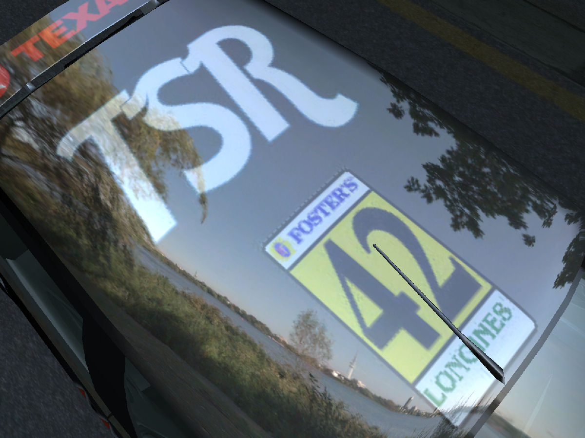 I was looking at a replay of a recent race I was in and just happened to notice the reflection in the roof of my car. If you'll notice, it seems to be a seascape with buildings on the far shore and trees closer up. Now don't get me wrong, but I thought South City was a concrete jungle type area, and that the reflection should have been a sky as I was looking down onto the roof.