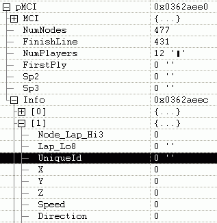 The oddity with this is, that I get all values in the CompCar struct set to zero (also the uid) for a player with a uid of 37.