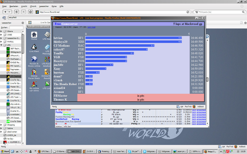 i don't know if it is a bug or if it is not intended to work, but when you have a race on the autocross (like banger or other races) the lfs-world link to show the actual race-status (like on the other tracks where you see who is first and who is on which split) does not work although this would be the only possibility to see in what lap each driver is at the moment. we even don't have the minimap AND no other way to see in which position each car is. and not having that kind of stuff on lfs-world is just one more penalty to this type of racing...