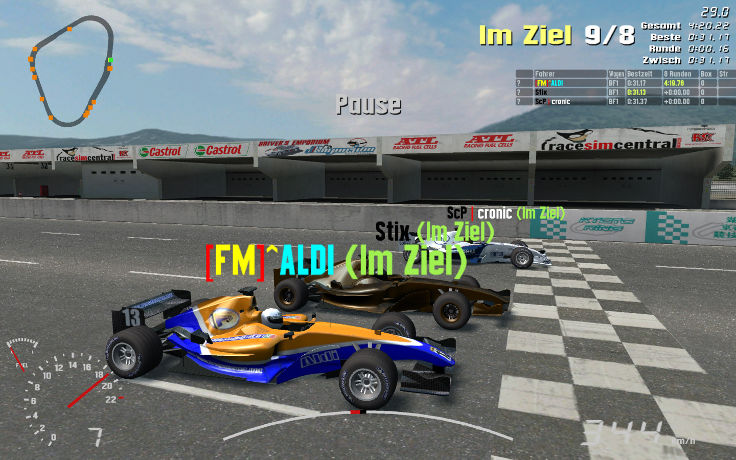 Just been racing around South City town Rev with the UF1 on a well populated server. After a few races my Pb started to come down so I was eagerly watching the clock as I approached the finish line.