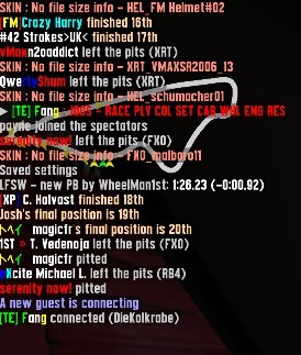 Well, I was also on demo server first, and I remember one XFG with red default skin (only 4 XFGs in race). Then I went to S2 Bug test server 2 (TBO) and it crashed after loading skins. Actually LFS was out of focus when it crashed, skin loading took a while so I was reading something else.