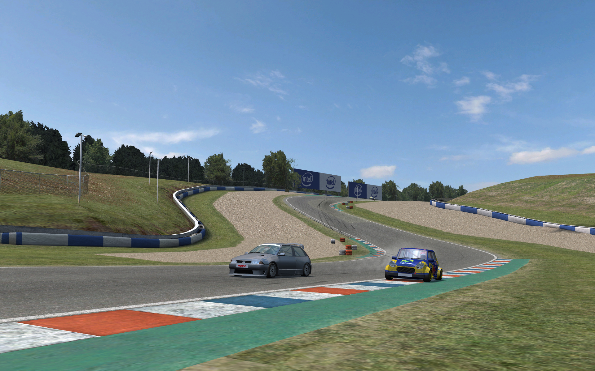 Hmm, I was driving on the Kyoto National, and decided to ram the pit wall, which of course send you flying. When I was respawned on the fence, the car gripped and started moving forward, then, the whole rear collapsed...