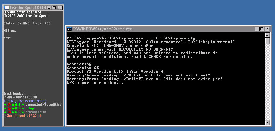 I want to know why when i start LFS lapper, after LFS DEDI (with the command /insim 29999), i see this