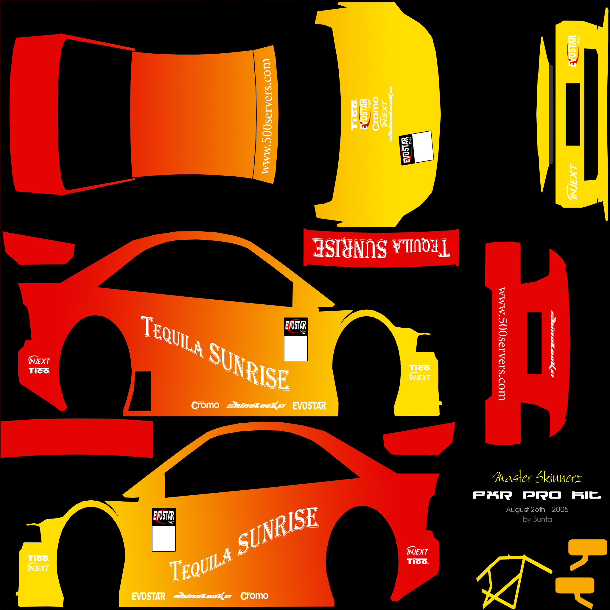 Update the car skin wants to look like tequila sunrise now the front of the car needs to be yellow then to the end of the of the doors now that should be like this http://www.recipeshouse.com/im ... _carb_tequila_sunrise.jpg now look at the bottom of the glass that end of the glass should look like the end of the car get what i mean.