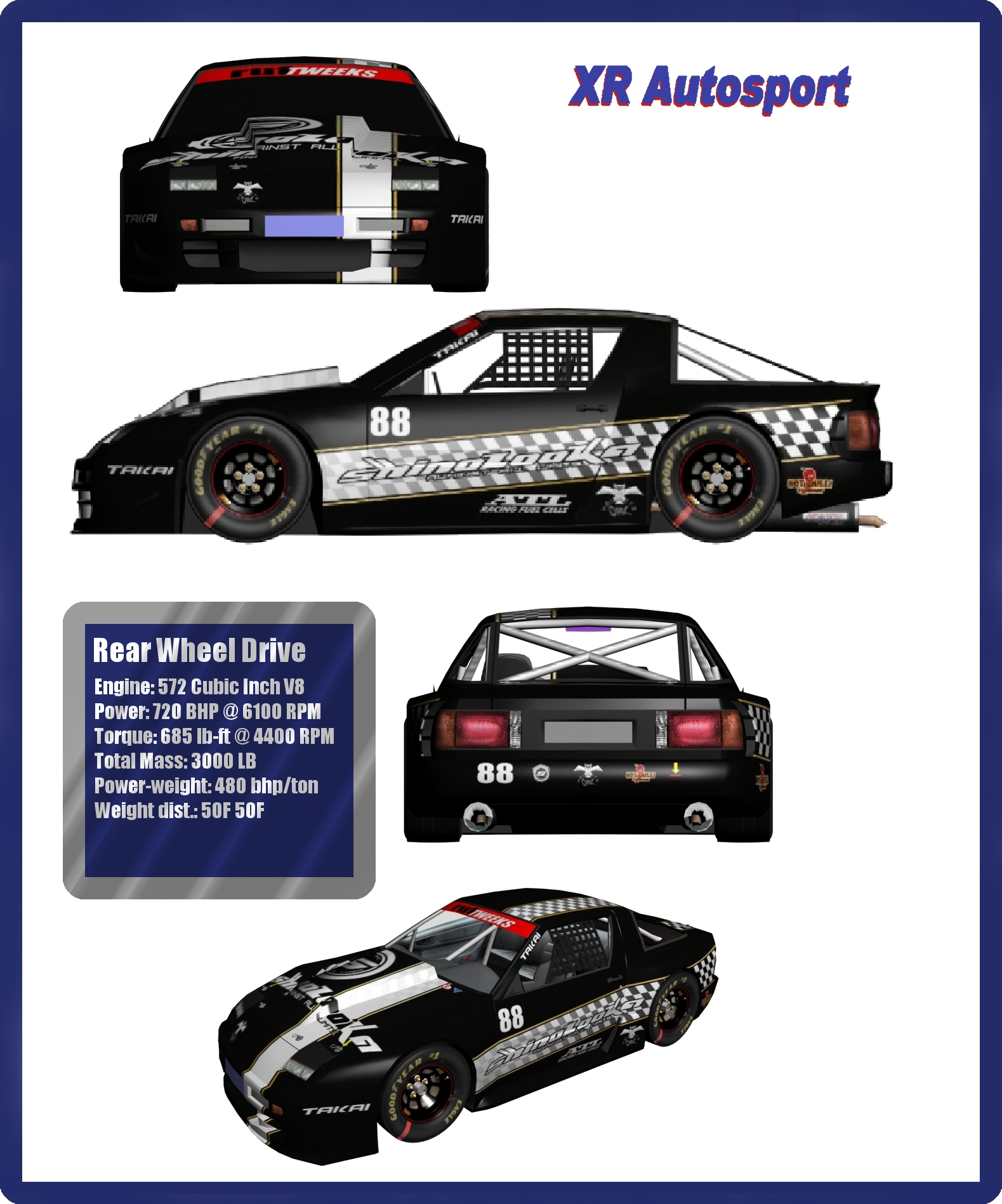 And the XRS model i've been showing is built to specifications (with a couple allowances made for me not wanting to chop 2 models apart to get what i need) for NASCAR Sport Stock. I assume you made a Nextel Cup class car or something like it.