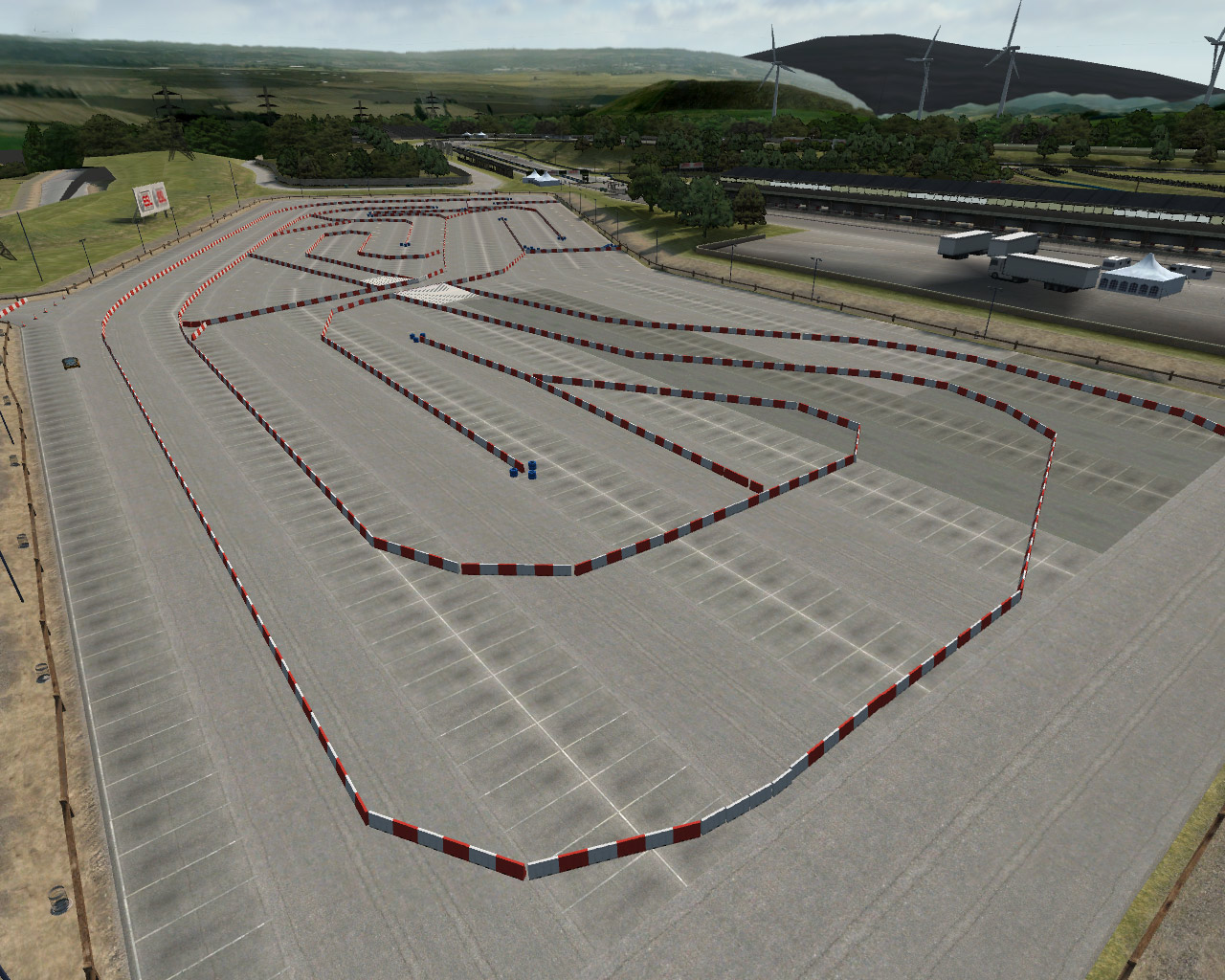 Looks good Celtic. Must have a run this evening. Only thing I would say is, that the corners are 'blind' - your view would be obstructed by the barriers at the approach to the corner, so you couldn't know how tight the corner itself is until you do a series of runs. Perhaps you could replacea the last barrier at each with a few cones? Would mean that the any clipping of the inside wouldn't be penalised so harshly either.