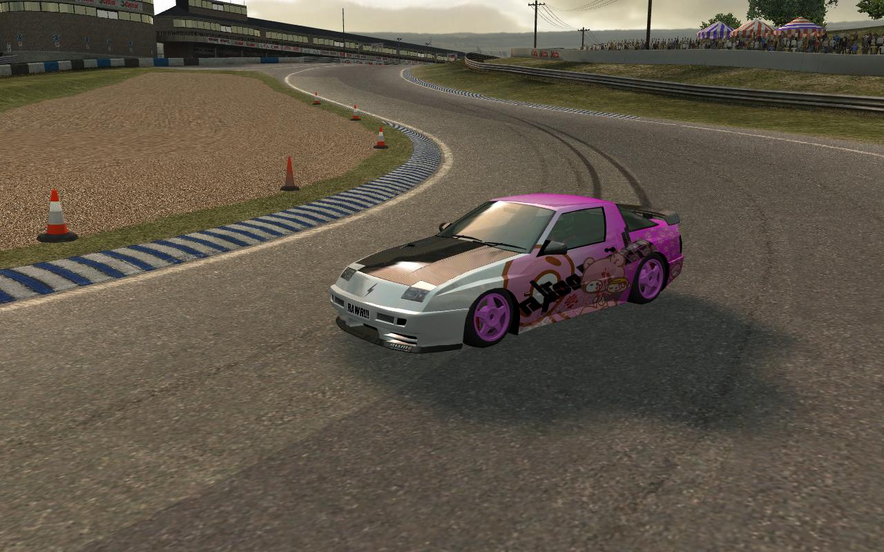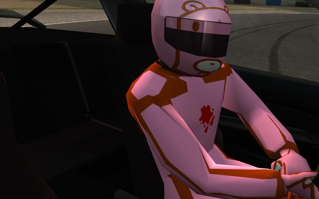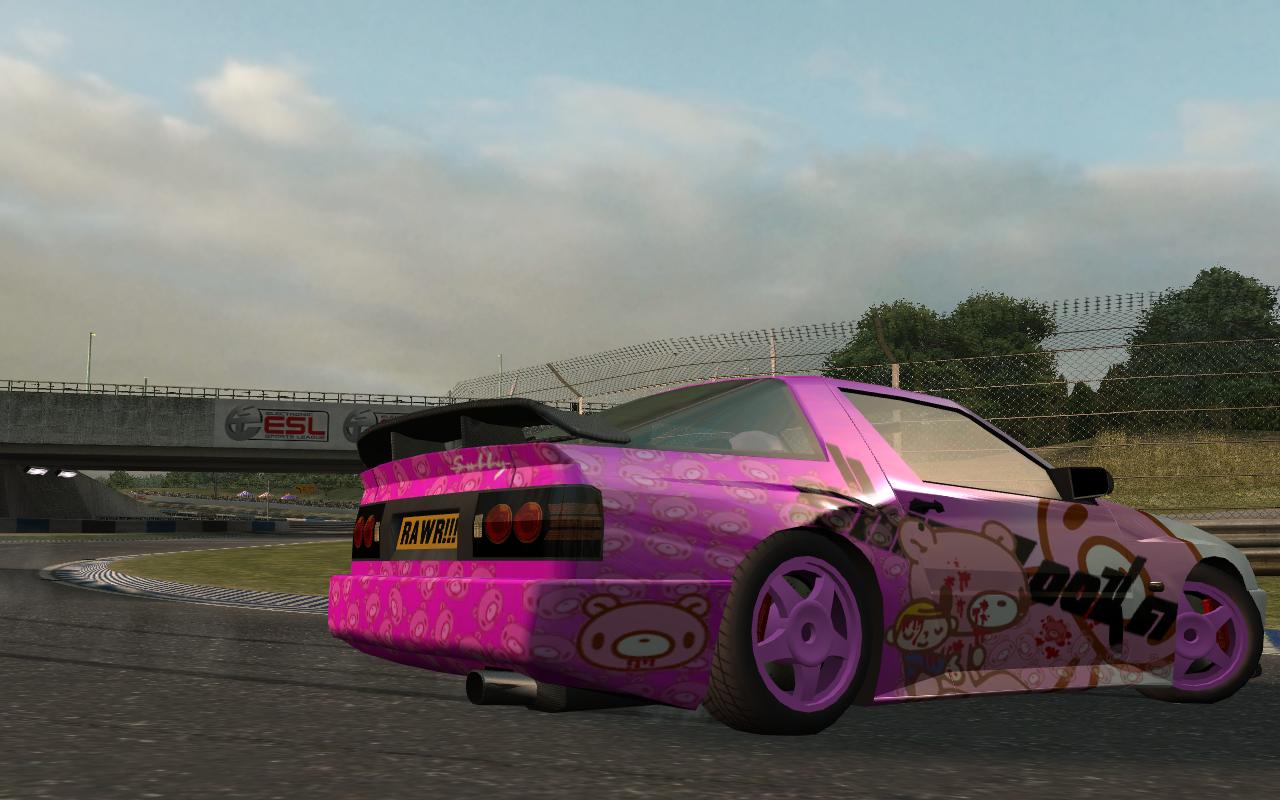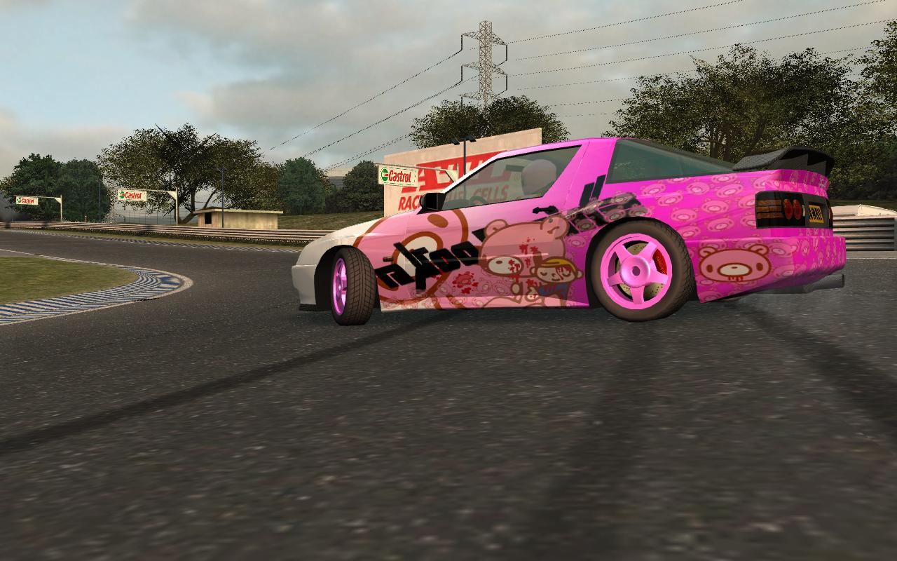 well heres my first actual attempt to making a skin (i mean actual as in actually working hard to make it... usually i just make something in 2 mins :P)... it took me two days to finally decide on what i should do... my car was sitting around just in its white and pink paint til i remembered gloomy bears :P i was thinking of adding some more decals like company decals... anyways here it is =] oh and i know i suck at making racings suits lol.... and gloves :P but i wanted a gloomy driver lol