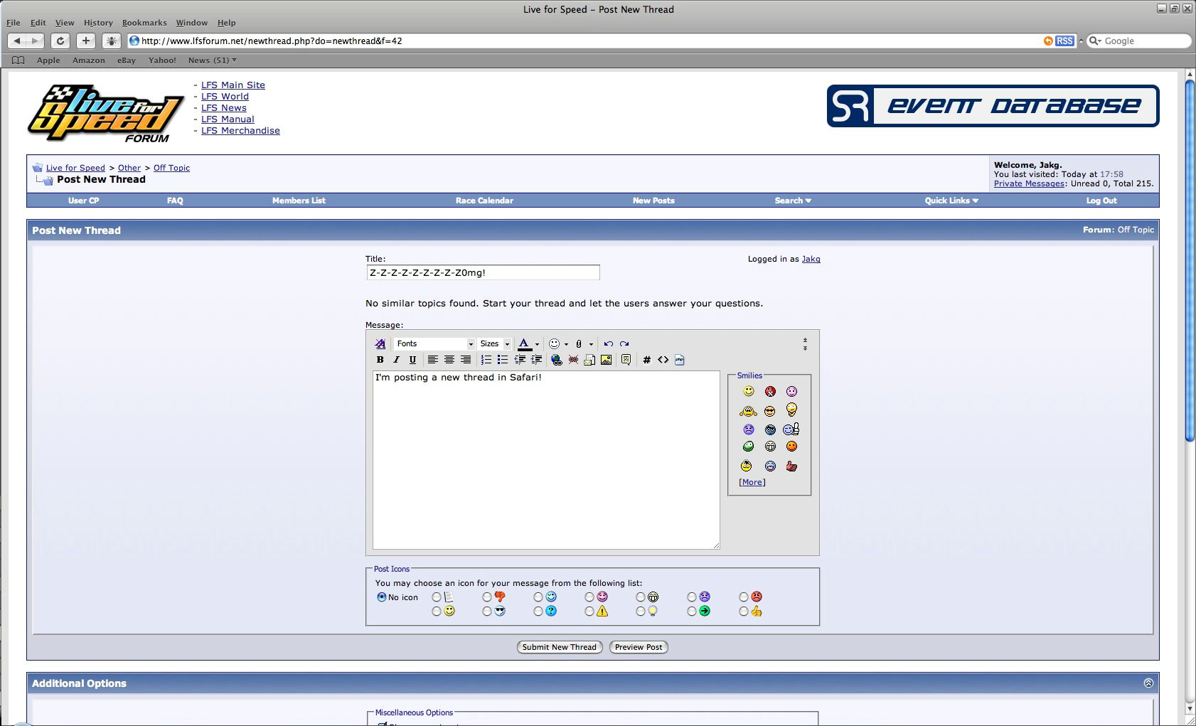 i'm having Safari crash issues when tring to post new threads. its been happening every sence the recent fourm upgrades. after a number of trys i can get a tread window like this one. what can i do short of using another browser?