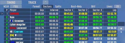 anyway it displays some timing info for qual and race, and a track position list (sth i've wanted for lfs for some time) showing info on