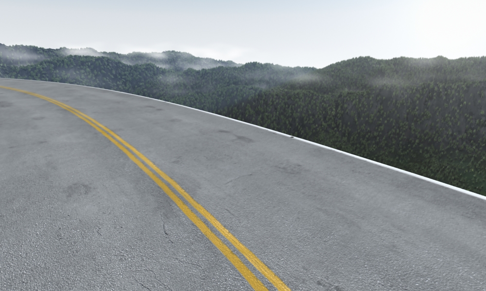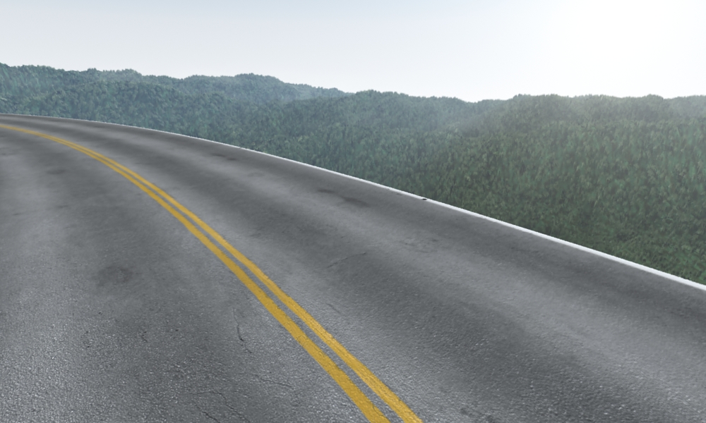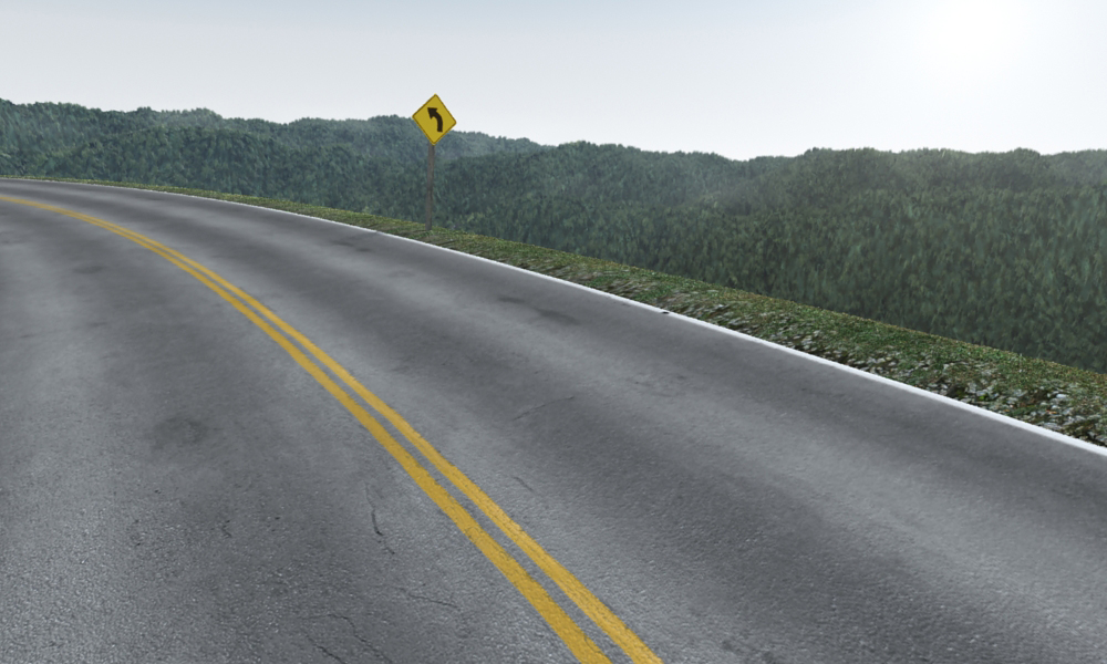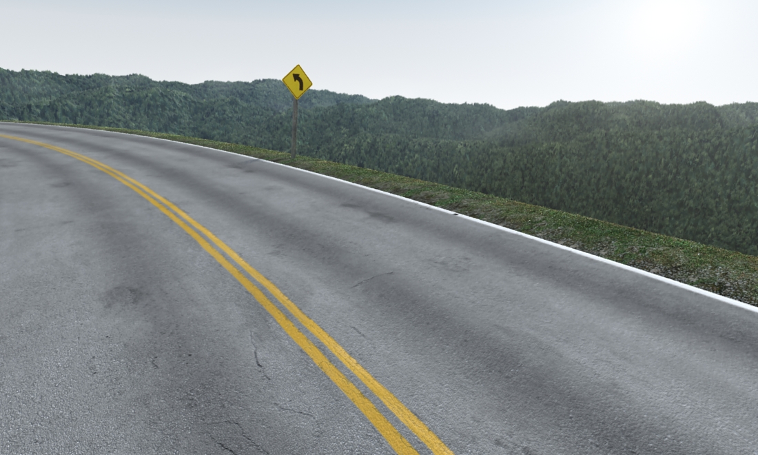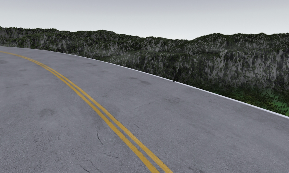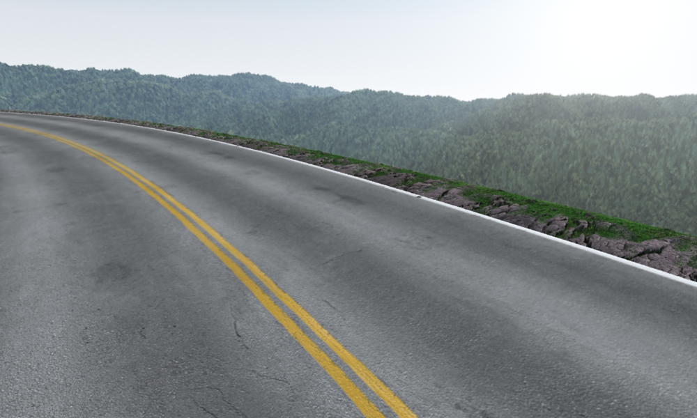 Anyway I started to create an outdoor environment based on mountains. I am going to add a dirt slope beside the road along with a guard rail. If there are any suggestions on what to add to spice up this scene a bit, you are welcome to do so