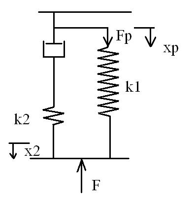 F + (k2 * x2) = k1 * (xp - x2)