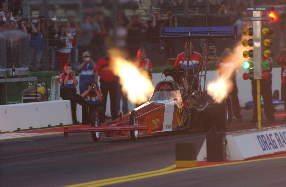 To top it all off just sitting as a British kid with his British dad watching Top Fuellers without Ear Plugs like Lunatics almost made me cry with excitement. Drag Racing is more of an Emotional Sport than anyother Motorsport. Its a very social sport, as you end up seeing your rivals on the Dodgems, or sitting eating burgers and you can just talk to any of the drivers, its such a great sport. TV Does this sport no Justice, and these engines are louder than Jet and Rocket Engines.