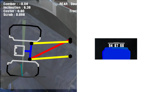 In the setup screen this means adding in a lot of camber adjustment because the suspension geometry on all the cars I've tried lack enough camber gain to handle this (they all need shorter upper arms, pretty much).