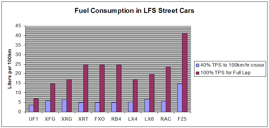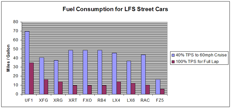 Ever wonder what kind of gas miledge your LFS Street car is getting? Ever care about how much pollution you are adding to LFS world? Maybe this experiment will help you select your car wisely.