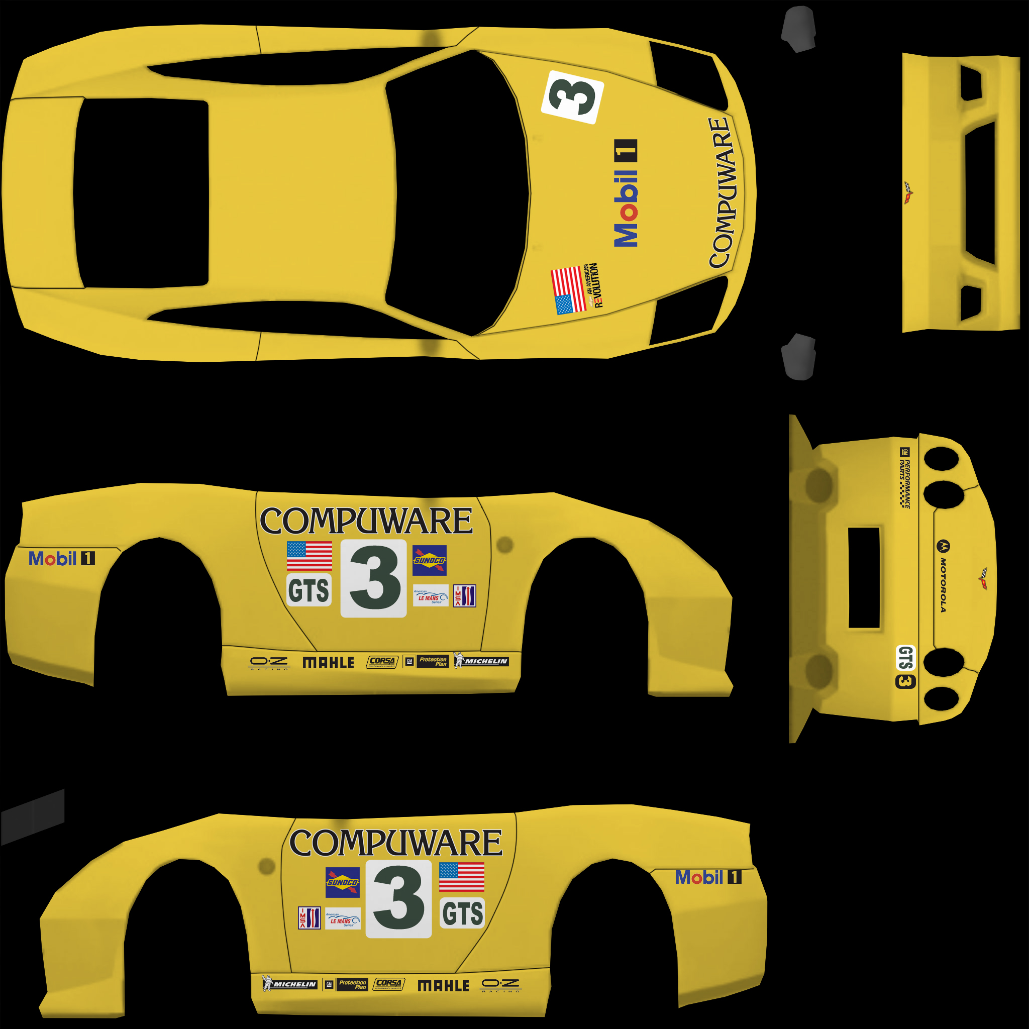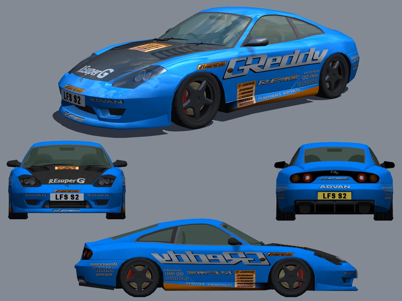 Here is my second skin for public use. This FZR should be easy to recognize. This took longer then I thought it would and I was not able to get the rear wheel arches on there. Well actually I did but I was never happy with the way they looked due to the warping of the skin so I just left them off all together. If anyone wants to add them be my guest.
