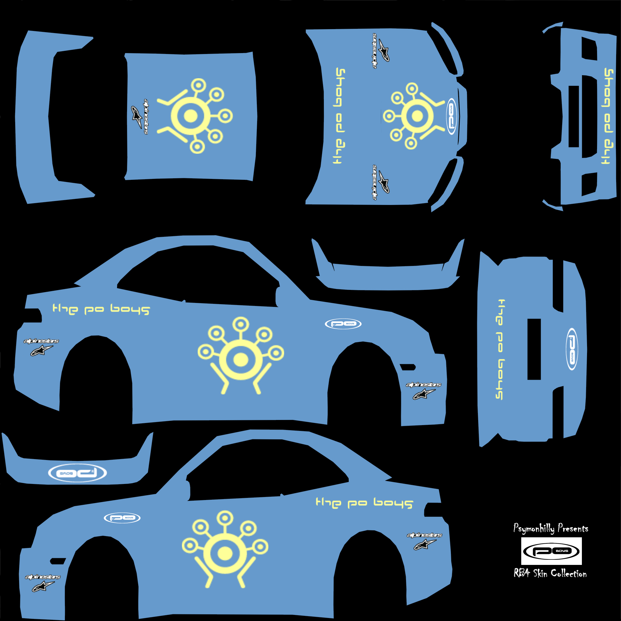 Po Boys RB4 Skin Pack based on Ex-BSB Jamie Whitham's Musical Band. Added a small preview of all the cars. hope you like Attached images