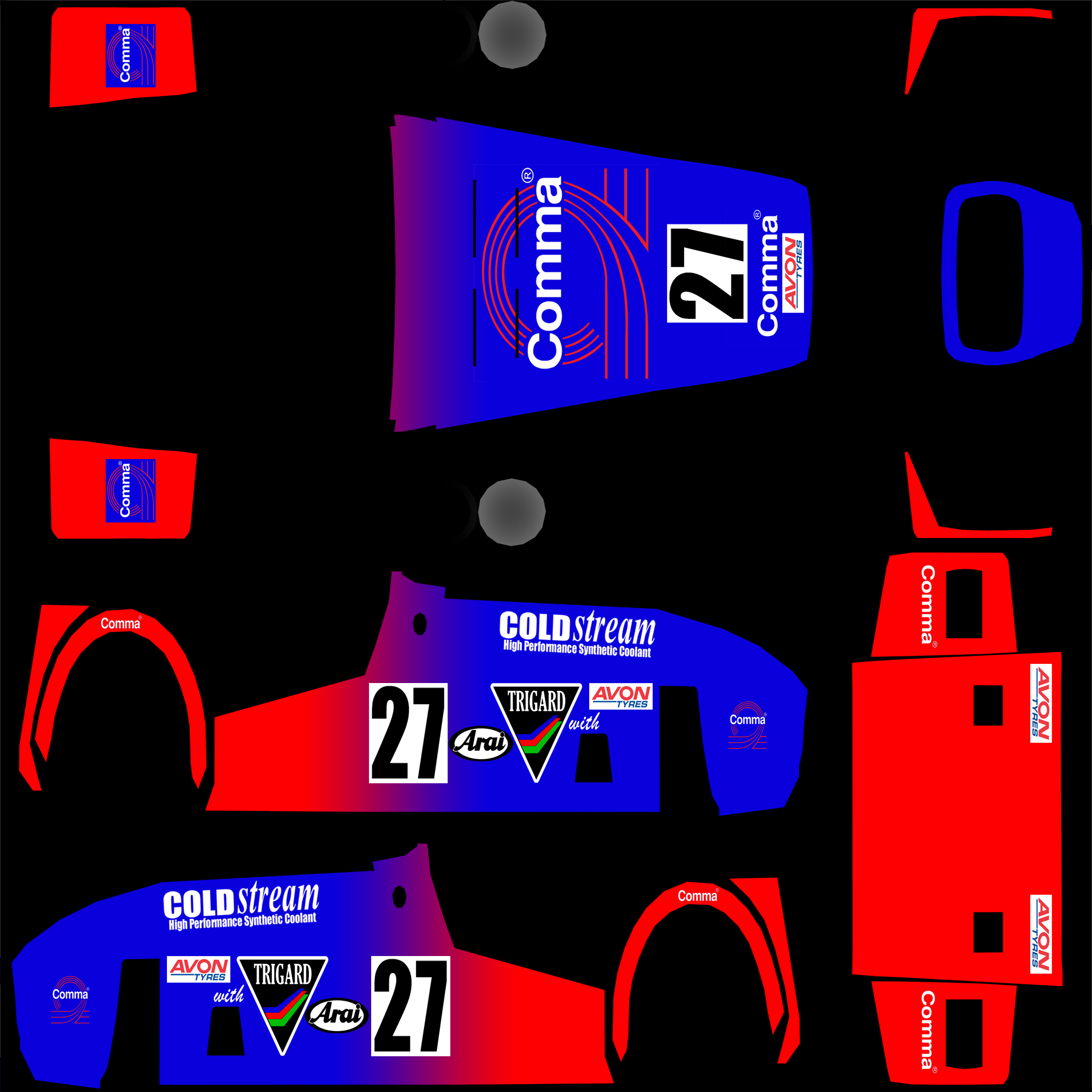 Another personal racing skin, not public, but since the base of this skin is from an other public skin (so the copyrights of the base should go to that person!), you can download it there (some pages before in this thread).