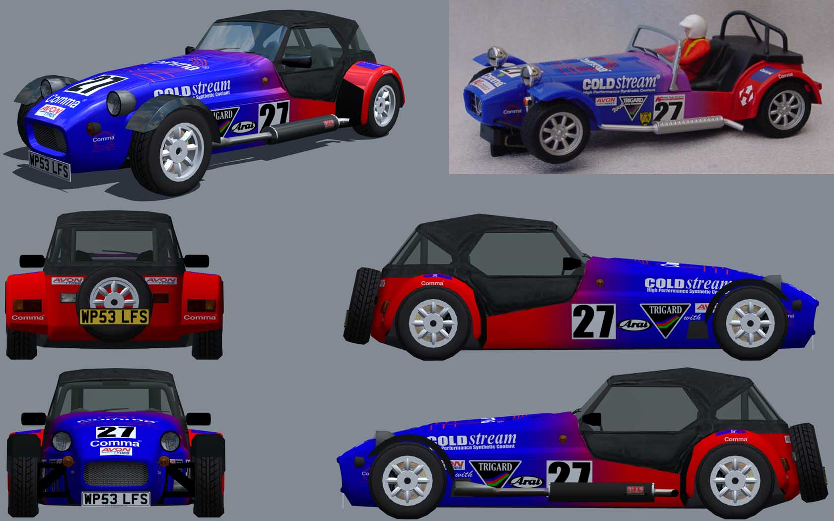 I've just finished a LX4 skin based on a scalextric Caterham I found whilst browsing Google.
