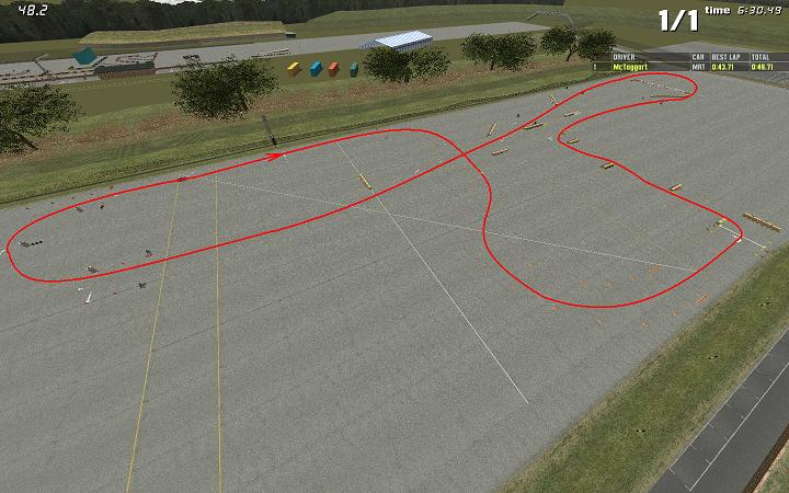 Short little track for the mrt. Slow section, really fast section, tightly barriered turns/slalom as well as some really open corners. I get around the 43-44s mark, mid 41's should be entirely possible.
