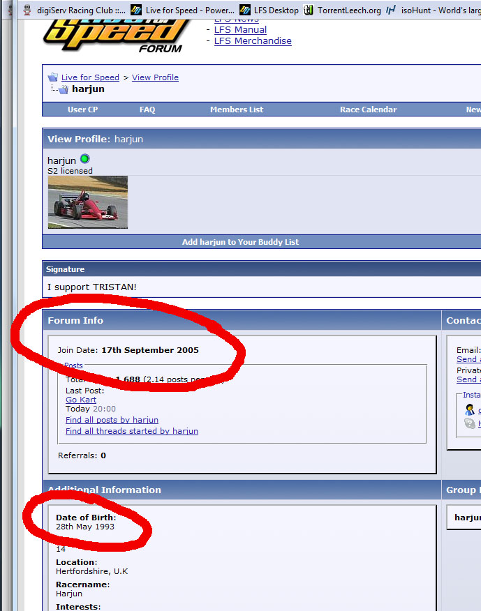 Quote from harjun :no, when you make an account on LFS, it automatically makes you a forum account aswell....get it right. I only came on this forum a few months ago, check when my first post was....