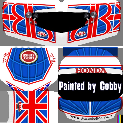 Suit is in attachment. You can change the name of it and replace last letter B with any of these: G, O, R, X. I also attached Button's helmets in British and UK versions because Gobby posted them in old RSC forum.