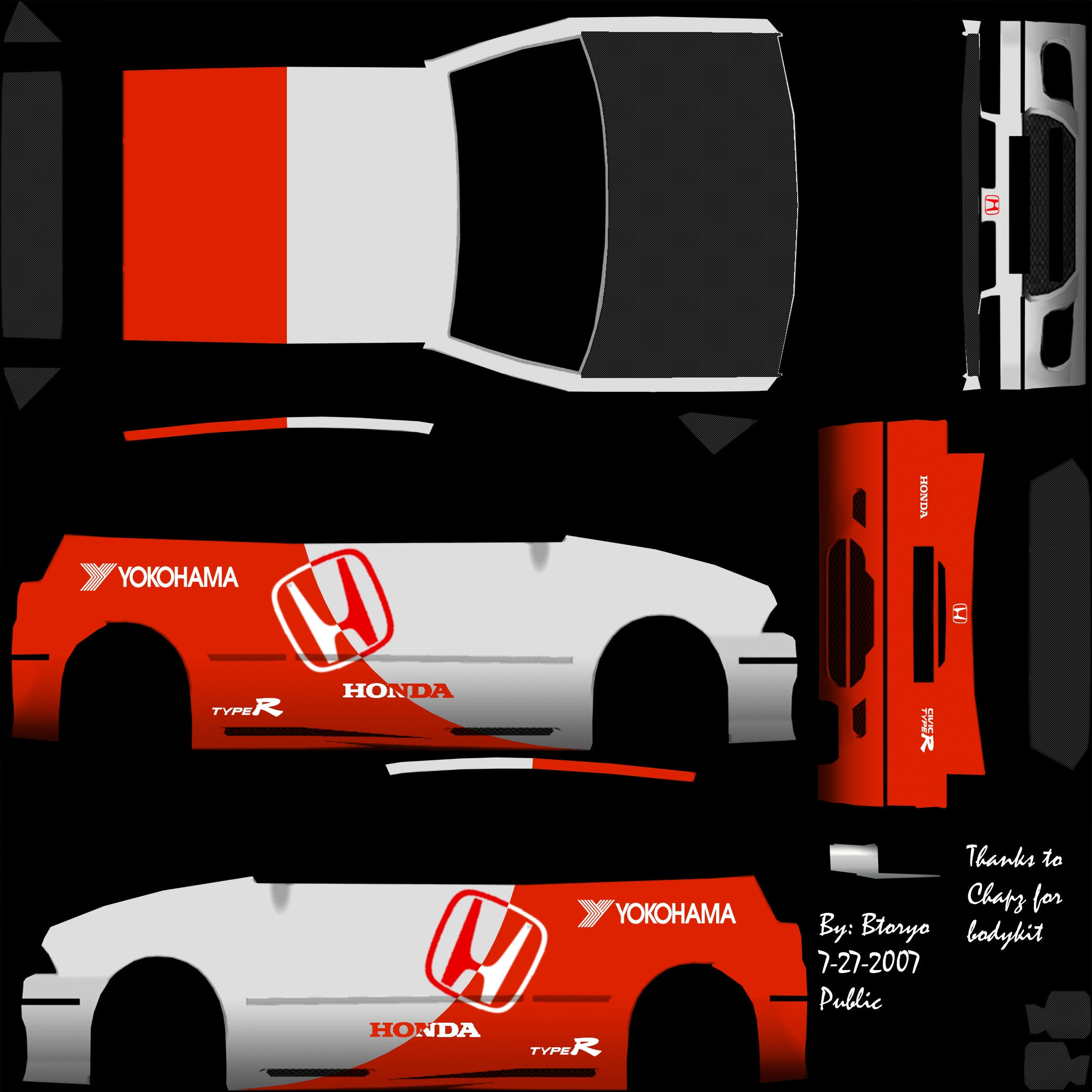 Skin is based on a 350Z drift car but now its a Honda enjoy, plus added 2 more skins