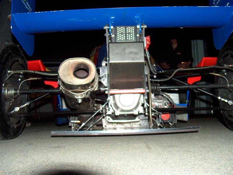 exhaust end hanging magically in the air, mounting pionts for the lower suspension missing...