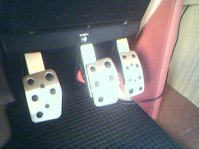 As I'm sure you're all aware, the brake, clutch and throttle pedals on the G25 sit 'on the same line', unlike a real car in which the throttle is set back in relation to the brake and clutch. This causes problems when trying to heel and toe with the G25.