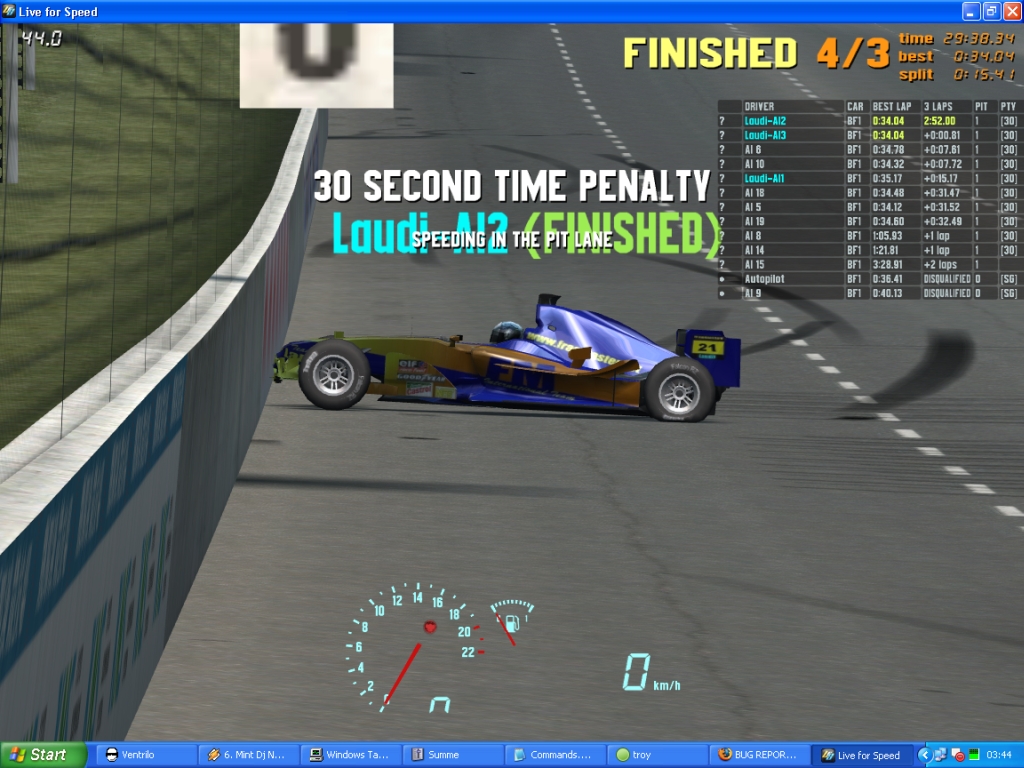 I drove about 20 different races since X33 i think, and in 10 of them i had big Problems with LFS. My FPS count goes down to 1 - 0,2 frames per secound for about 10 seconds. I cant do anything against it. Of course i cant hold the Car on track and loose control!
