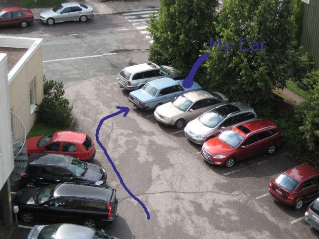 Here is one parking I did last summer, no reversing just turn and drive forward, all those cars were there at the moment when I drove.