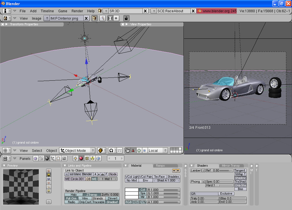 Btw, another question: How do I rotate the front wheels of the car (as if steering). I tried moving them in the same way as with camera but they are rotating around cars center, and they consist of several parts. Any tips?