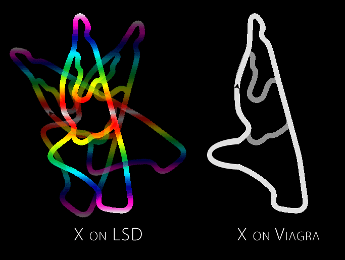 X on LSD is really cool because I sat on the grid staring at the lights on my dashboard for three hours... by then the acid had warn off and in actual fact i had been looking at a shoe really really closely.