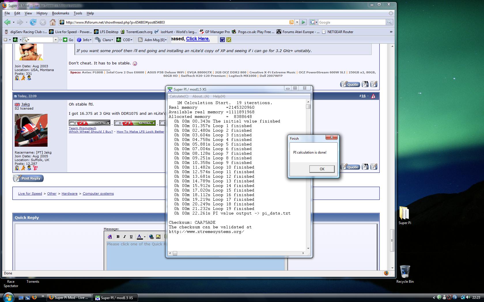 Here it is, running LFS, TS, Speedfan and Wingman Profiler....slow thing.
