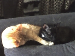 I got 2 very lazy cats. The black one is a girl named onix, and the other one is her brother named tizian. Stupid names, i know...