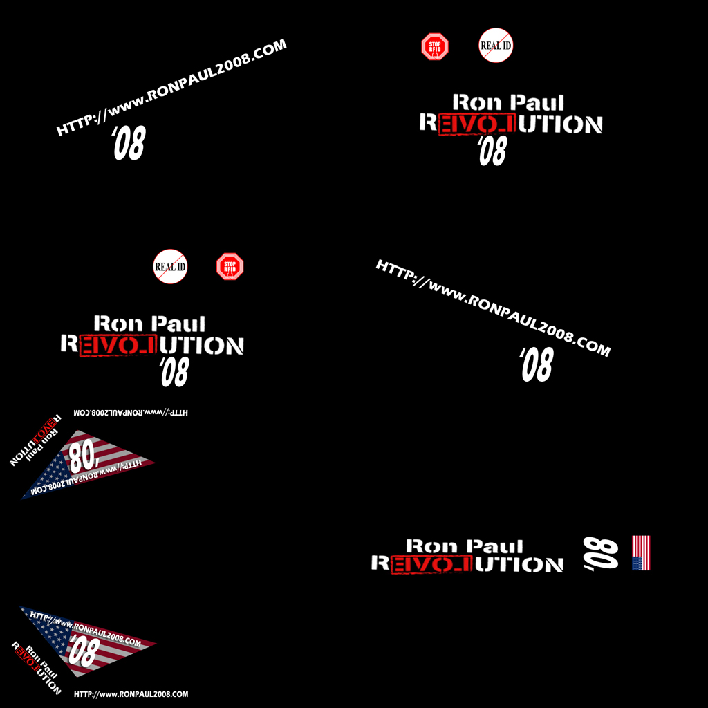hm.. to be honest (and this goes for all you Ron Paul skins) they're just black with some text.. bit boring if you ask me.. on the other hand they do what they're meant for, show what you (or he) stand(s) for. But I think they could use a bit more 'design' stuff.. atleast more color?