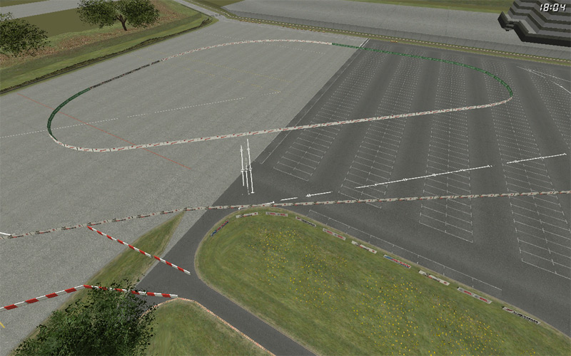 hi here is a small trioval/almost D-shape oval, i've made for lfscar 360° series (actually we've never raced on this one). it even has a pit-area, (white boxes). you are only allowed to reset your car in those boxes. (that was the rule)