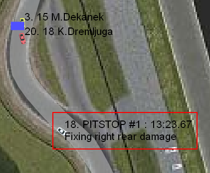 According to LFS Remote car #101 (18th position) is having a pit stop but in fact it is on track racing.