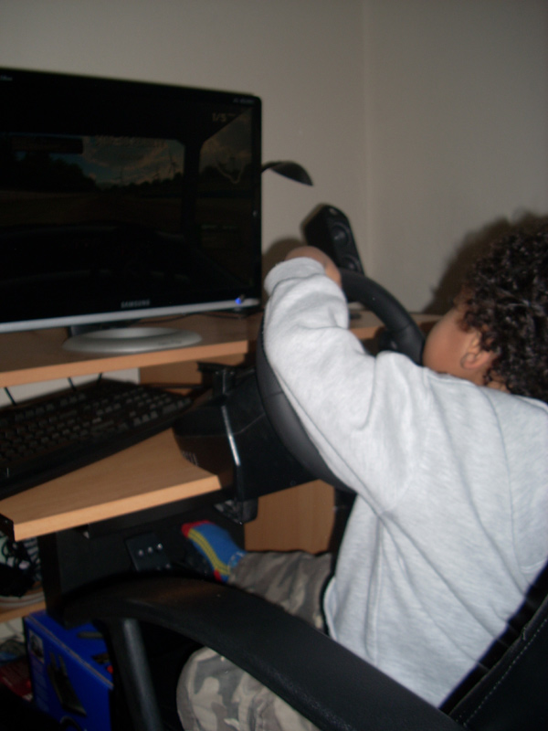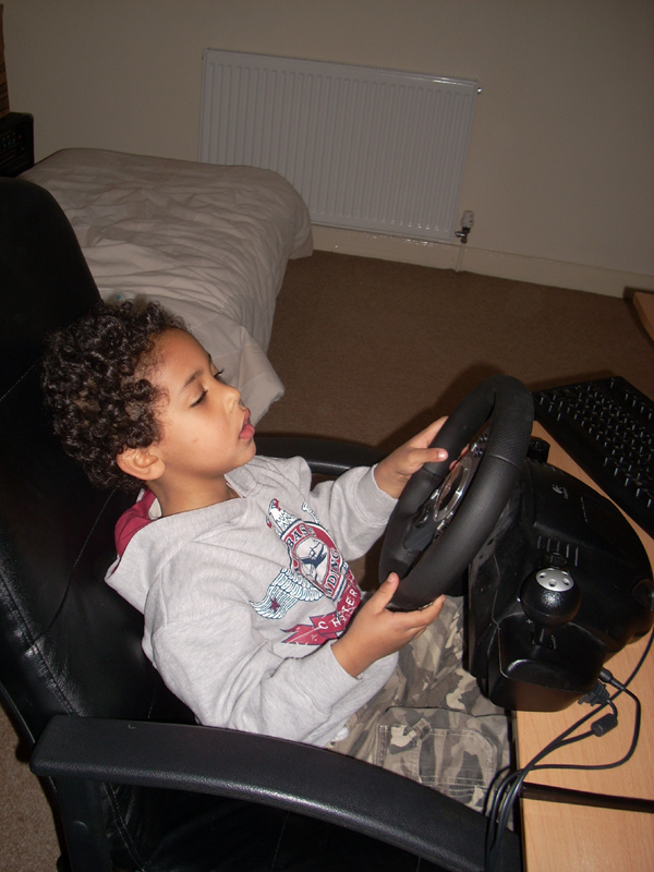 He's very easily distracted by tyre walls - it's difficult to get him around a corner when there are tyres to be knocked down, and he practically wets himself laughing at tyres bouncing off into the distance and chases them to hit them again while they're bouncing - the ultimate thrill.