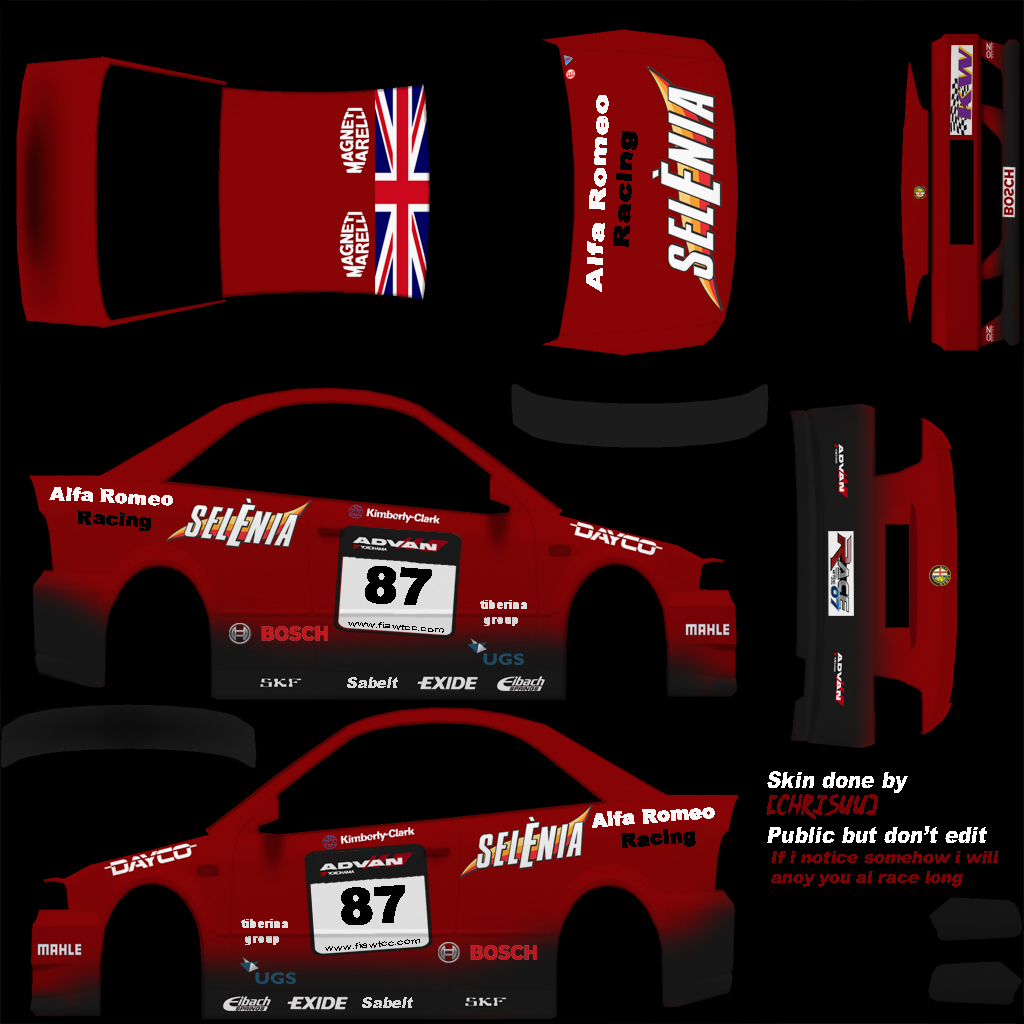 o no, its goin public, i just really needed an alfa skin for a tbo class cup, o an irish dude, person, u can feel free to edit the flag, (just the flag) as soon as its posted