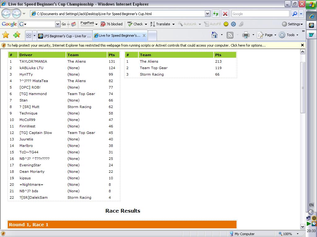 I've no idea what else happenned in the race, my messages (wisely, IMO) were blocked.