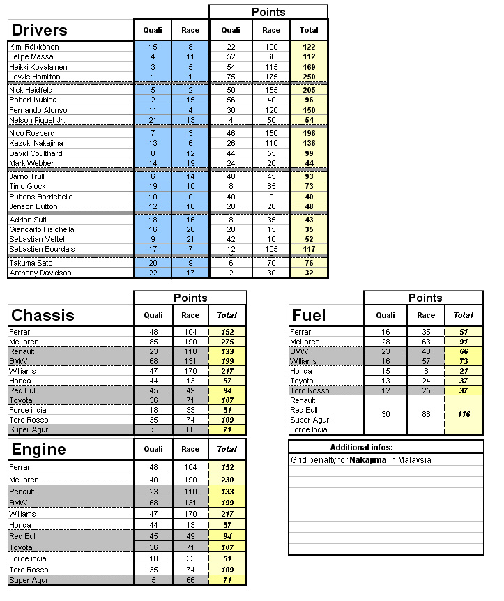 We've got 18 guys in the top 200 overall, so i'm guessing we must be quite high up. And there are prizes for the best subleague, Yeh !...6 F1 caps