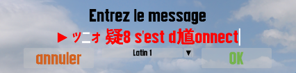 Quote from Lotesdelere :Screenshot 3: this nick name destroyed the whole line including "s'est déconnecté" (has disconnected)