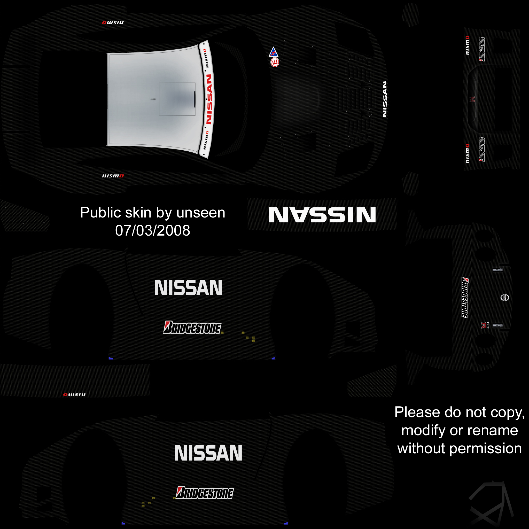 Since beefy stuck the red/black version of the 2008 Nissan GT-R GT500 up a couple of pages back, I thought I`d quickly do the earlier non-numbered plain carbon test version for the FZR. There`s also a version for the FZ5.