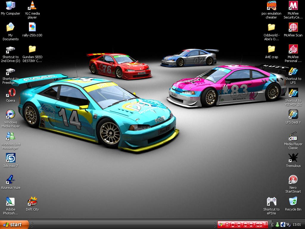 Quote from drone wolf :i got one of the most cluttered desktops full of junk. why you have lfs in your desktop.. like that