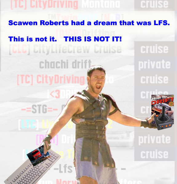 I wouldn't care if they just drift,cruise in their servers with current lfs ,but then they going to race servers and wrecking or want live for drift I can't feel good. I was noob...yes ,but i didnt ask everyone where is q x,where is npc y, I just read wow forums,guides and stuff to be progressive like I do in LFS.