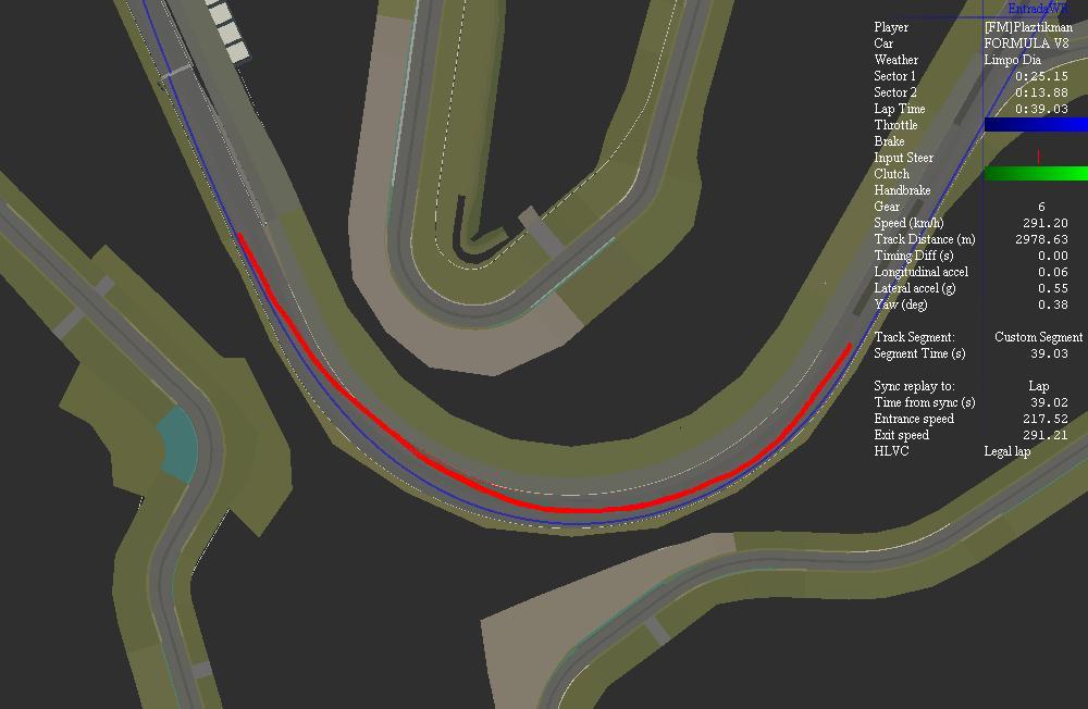 - speaking about the ideal line, there is the general ideal line (if i can call it like that (im not talking about the line you get when you press 4 because its the AI line (while it can give you quite an idea about the actual line indeed ))) (meh) but each setup or vehicle will need a different approach for each area on the track and so the best line is dependent on your setup and the way you make use of it
