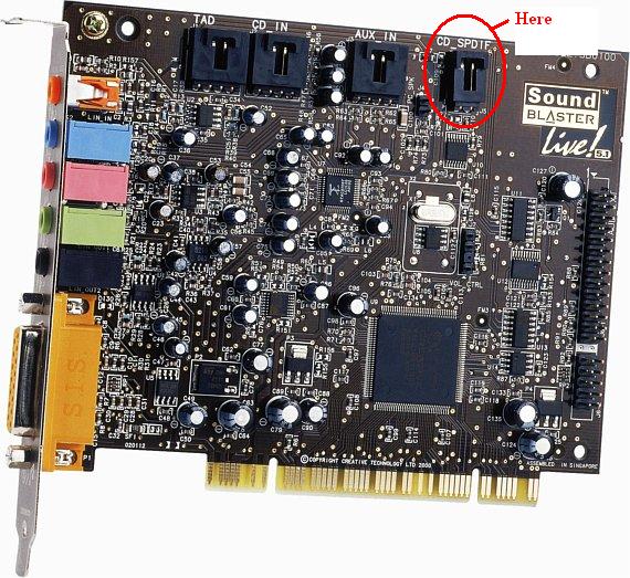 The problem is the SB Live card that I have has a two pin connector mounted on the PCB that says CD SPDIF which is an optical output but it is not the square optical type of connector.